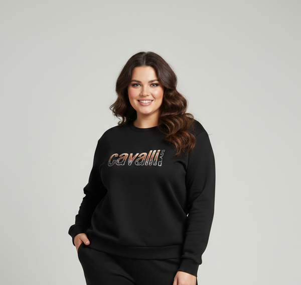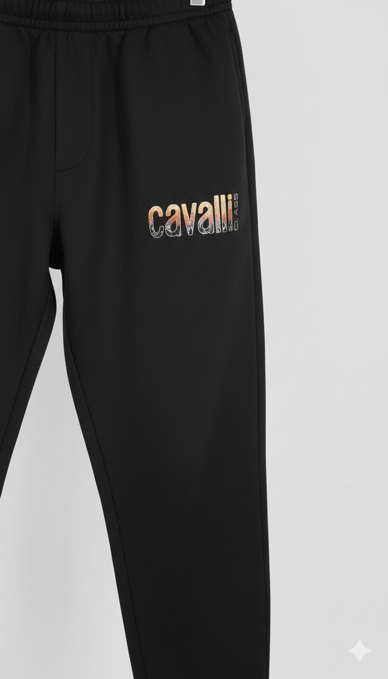 Tuta completa Cavalli, la felpa girocollo presenta la prestigiosa scritta "Cavalli" sul petto con una finitura metallizzata ed elegante che cattura la luce, richiamata anche dal dettaglio logo sul pantalone.Realizzata in morbido cotone elasticizzato di alta qualità, garantisce calore, traspirabilità e una sensazione di estrema morbidezza sulla pelle.Il pantalone presenta un taglio jogger con comode tasche laterali e fondo a costine, ideale da abbinare a una sneaker nera per un total look grintoso.