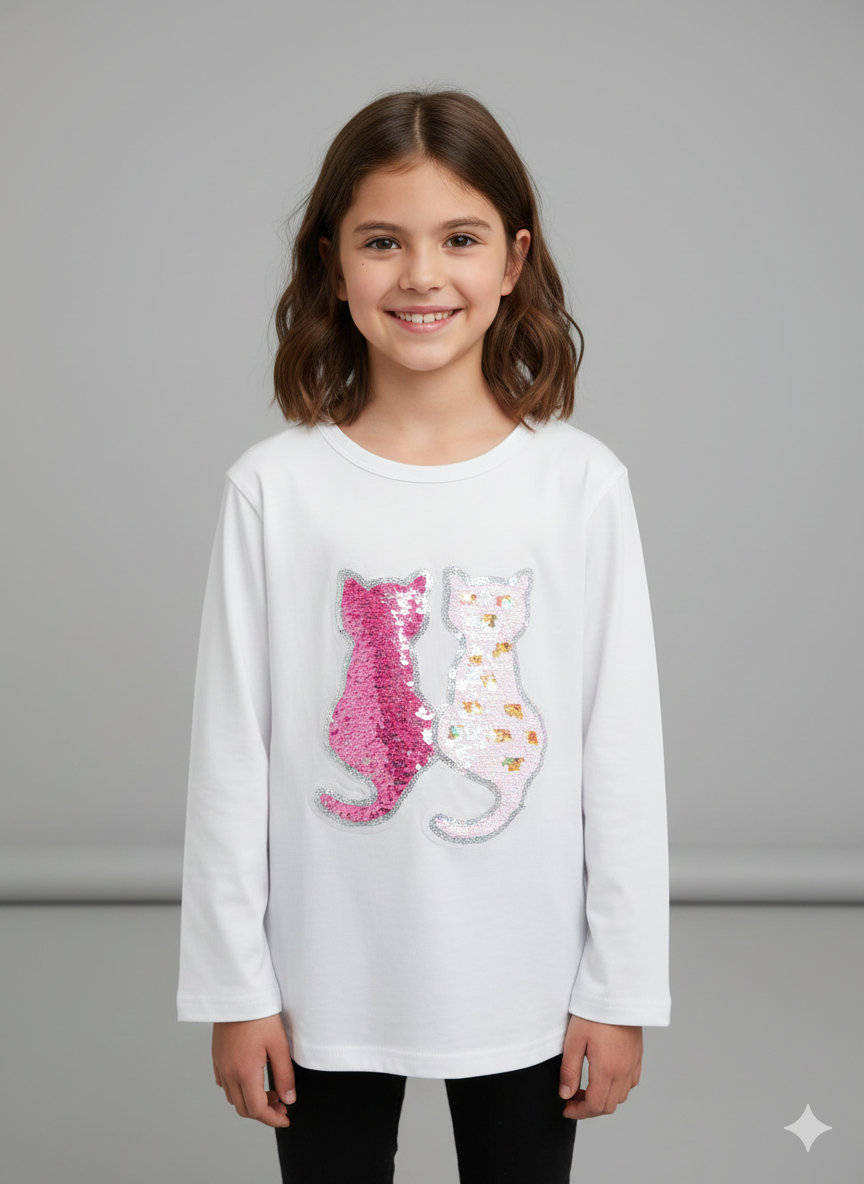 Aggiungi un tocco di magia e brillantezza al guardaroba della tua bambina con questa dolcissima t-shirt. Caratterizzata da un design pulito ed elegante, è il capo ideale per chi ama gli animali e non vuole rinunciare a un dettaglio luminoso nel proprio outfit quotidiano.