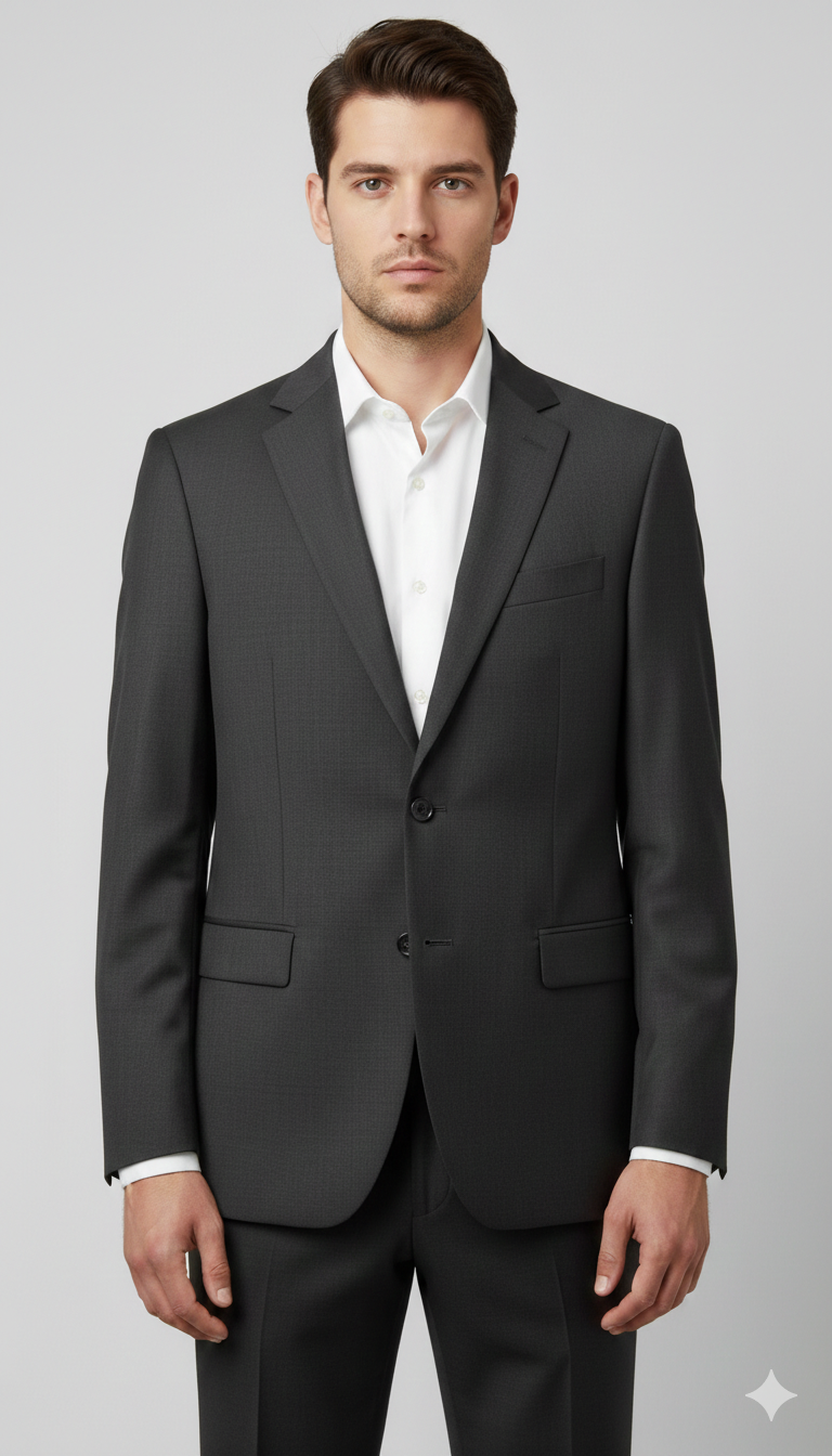 Eleva il tuo guardaroba business con questo completo due pezzi, progettato per l'uomo contemporaneo che ricerca un equilibrio perfetto tra eleganza classica e taglio moderno. Realizzato con un tessuto pregiato dalla sottile micro-texture, questo abito offre una lucentezza naturale e una resistenza superiore alle pieghe.