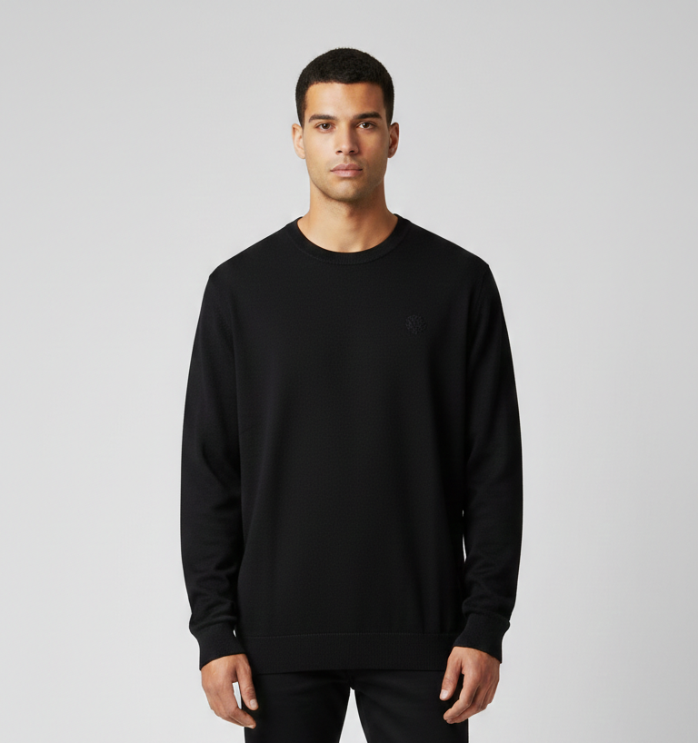 Eleva il tuo guardaroba quotidiano con questa maglia girocollo dal design pulito e contemporaneo. Un capo versatile che unisce il comfort di una felpa alla raffinatezza di un pull leggero, perfetto per un look total black o da spezzare con un denim chiaro.