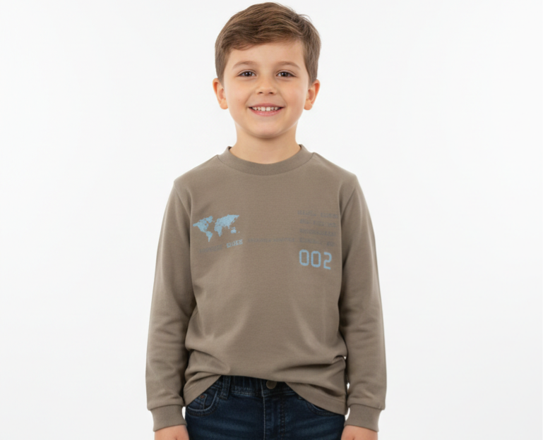 Aggiungi un tocco di stile avventuroso al guardaroba quotidiano con questa felpa leggera in misto cotone. Caratterizzata da una tonalità fango versatile e naturale, è il capo ideale per la scuola, il gioco e il tempo libero durante le mezze stagioni.