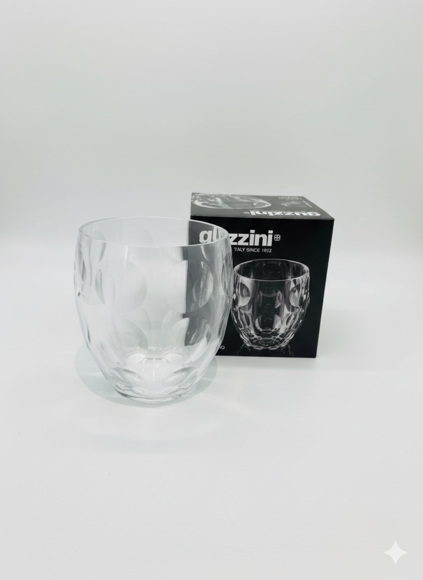 Materiale Tecnico: Tipicamente, Guzzini utilizza materiali plastici pregiati come l'SMMA, scelti per la loro resistenza agli urti, la trasparenza cristallina e la compatibilità con il lavaggio in lavastoviglie.