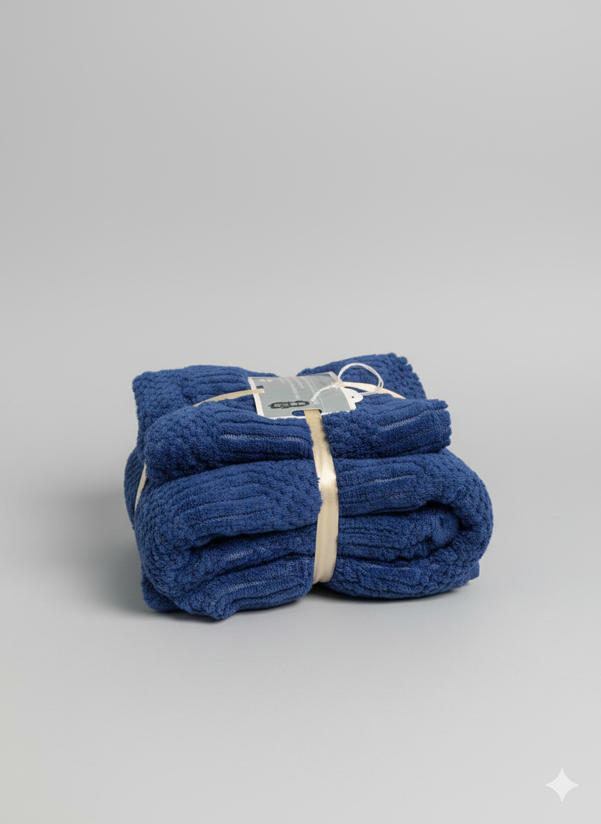 Set Asciugamani in Spugna Blu Notte – Morbidezza e Stile
