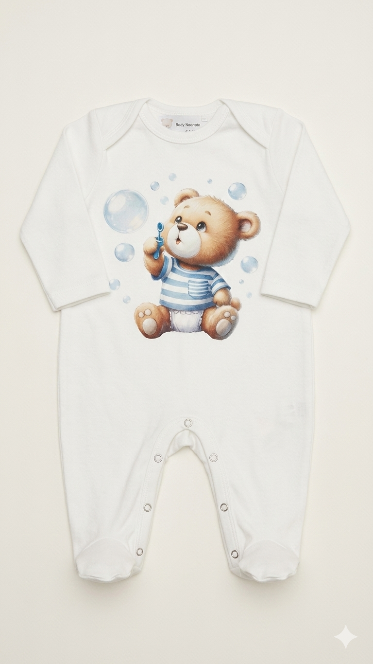 Tutina Body Neonato "Orsetto Bolle di Sapone"
