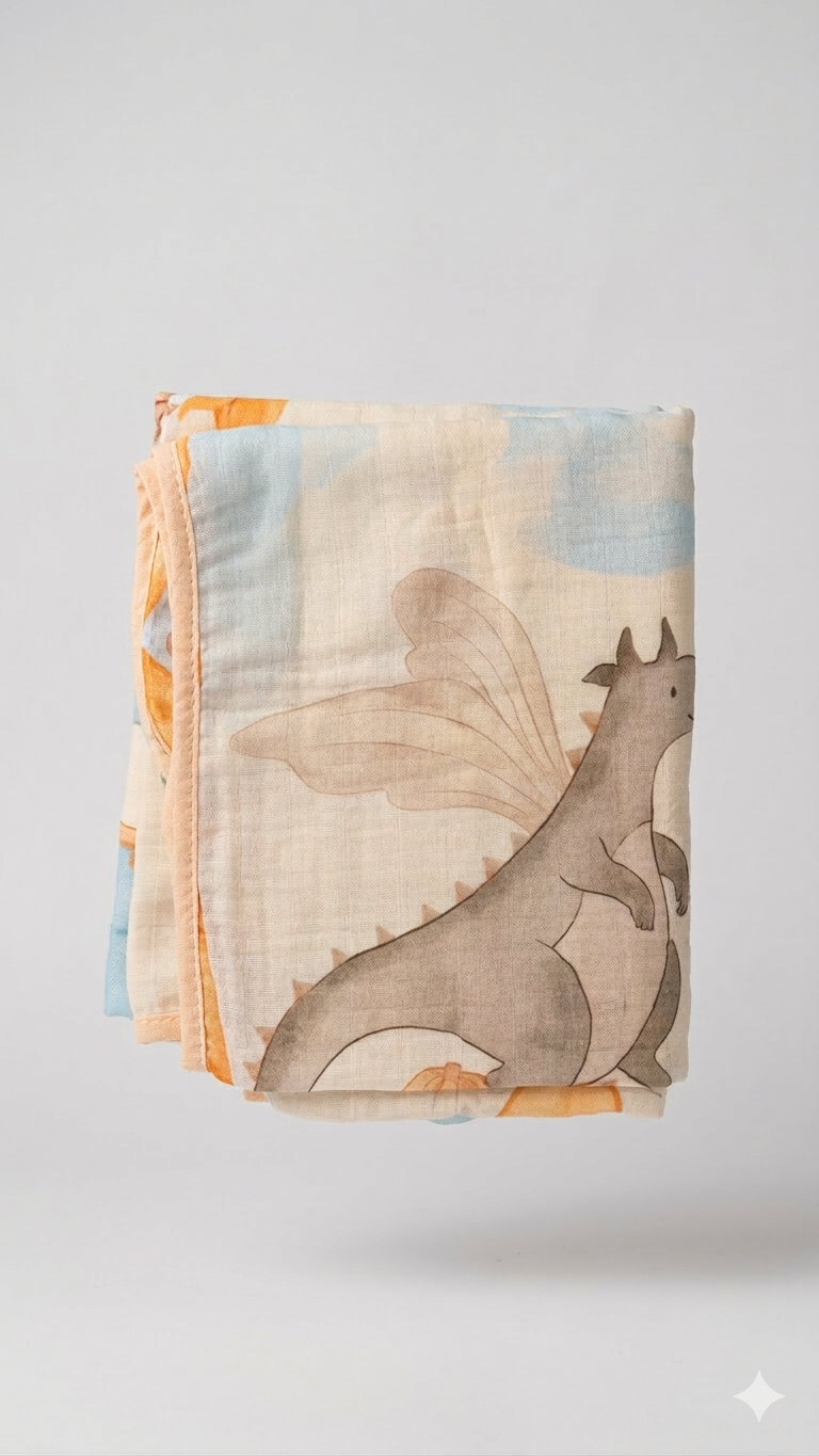 Rendi il momento del cambio un’esperienza magica e confortevole con il nostro telo coprifasciatoio in puro cotone. Caratterizzato da una dolcissima illustrazione di un draghetto dalle tonalità neutre, questo telo unisce la delicatezza necessaria per la pelle del neonato a uno stile giocoso e moderno.