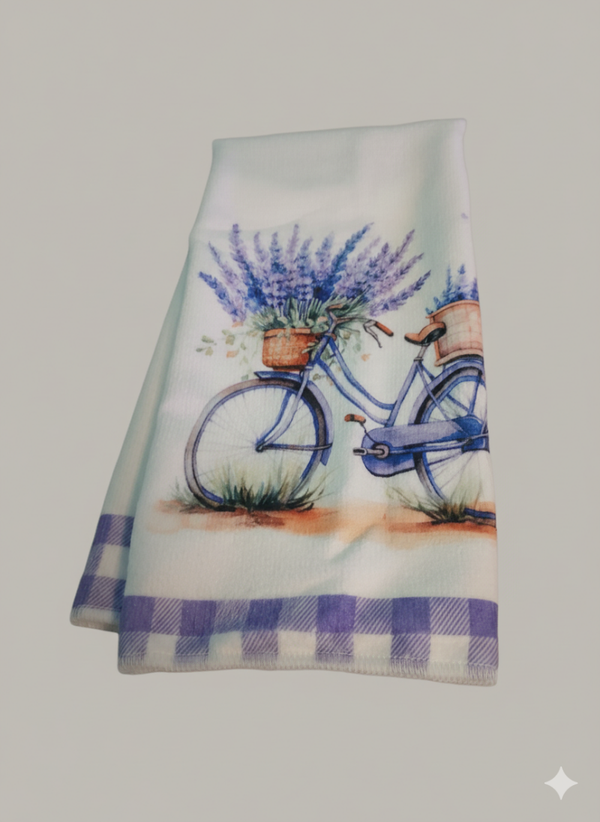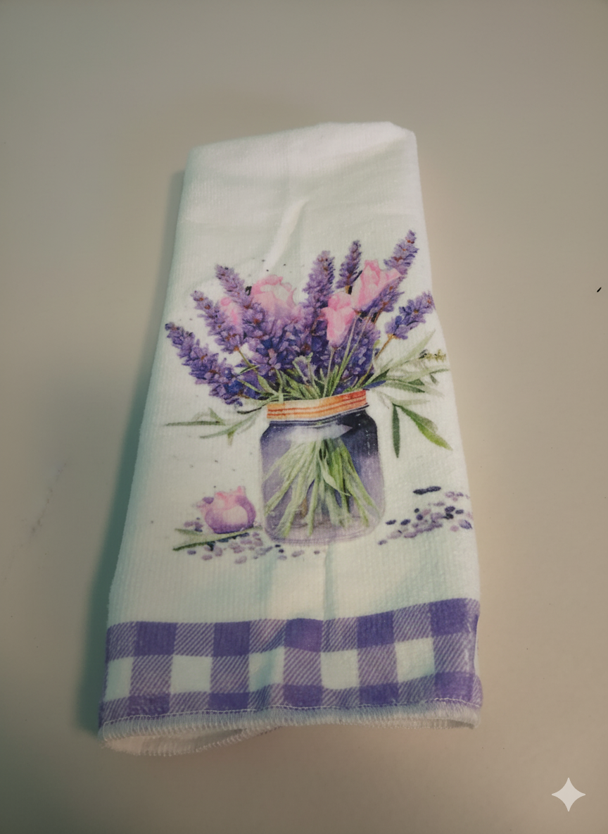Questo asciugamano da cucina è il perfetto complemento d'arredo per chi ama i dettagli curati e le atmosfere romantiche. Il design presenta una delicata illustrazione in stile acquerello, la stampa dai toni pastello è incorniciata da una raffinata bordura a quadretti bianchi e viola, che dona un tocco di eleganza senza tempo.