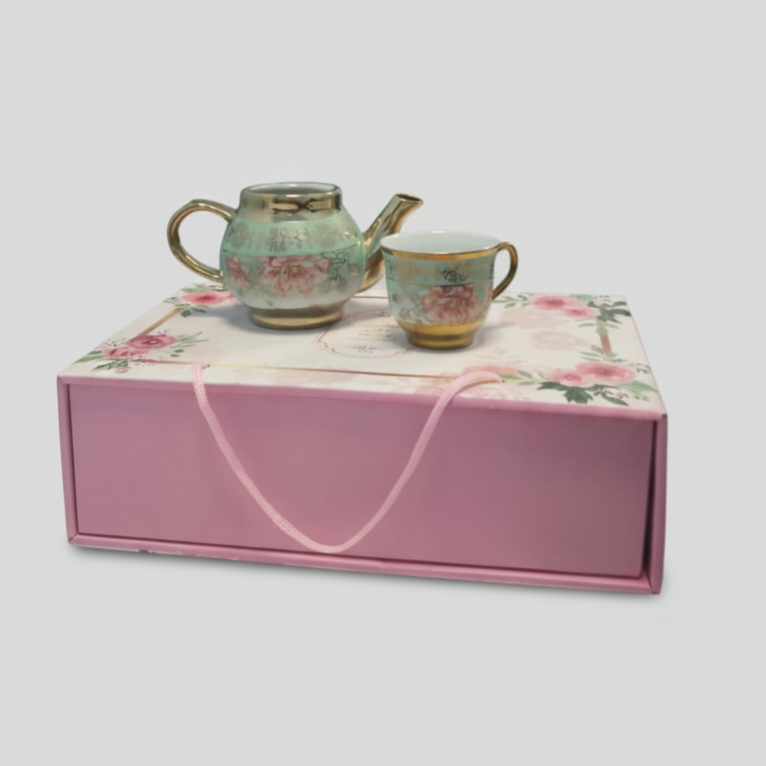 Trasforma la tua pausa tè in un rituale di pura bellezza. Questo esclusivo Set da Tè per 4 persone unisce l'estetica classica a un design sofisticato, caratterizzato da delicate decorazioni floreali nei toni del verde pastello e tocchi luminosi color oro.