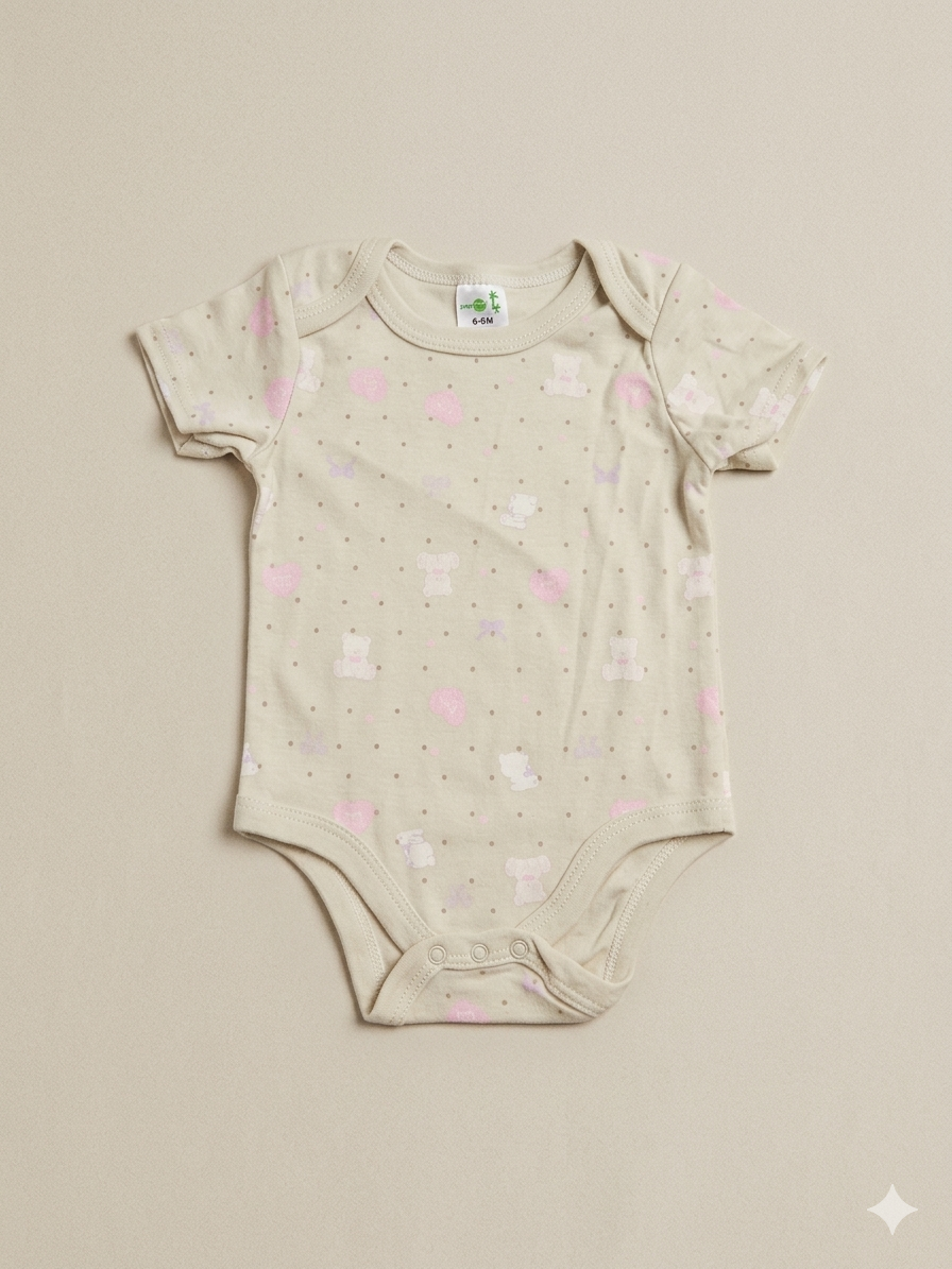 Aggiungi un tocco di tenerezza al guardaroba della tua bimba con questo body delicato e confortevole. Caratterizzato da una base in tonalità beige sabbia naturale, è decorato con una dolcissima stampa all-over di orsetti bianchi, cuoricini rosa e piccoli pois, perfetta per un look quotidiano curato e romantico.