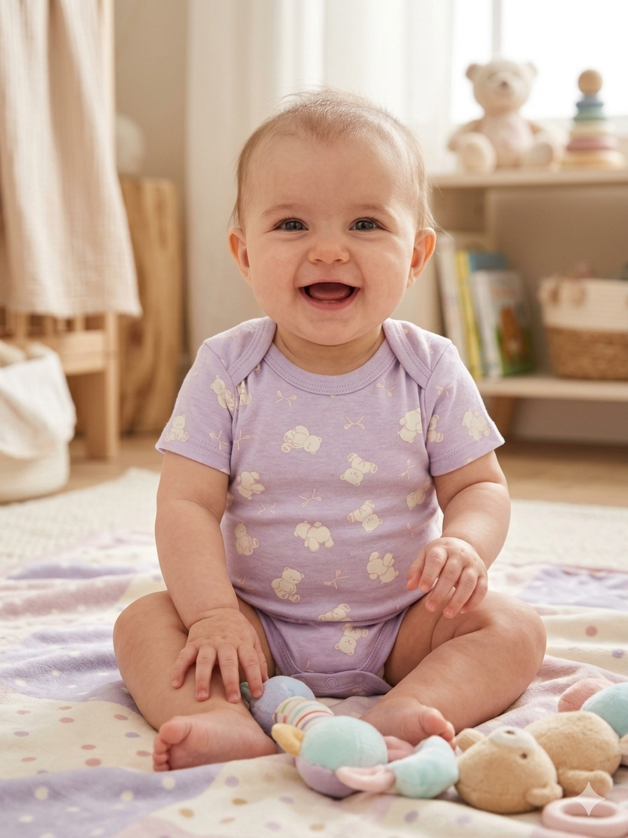 Regala alla tua bambina un abbraccio di morbidezza con questo delizioso body a maniche corte. Caratterizzato da una tonalità lilla pastello e una stampa dolce e giocosa, è il capo ideale per garantire comfort e stile in ogni momento della giornata.