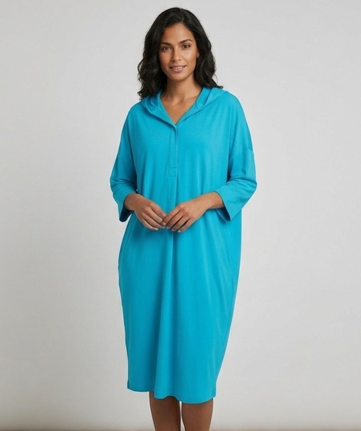 Questo abito midi si distingue per la sua linea ampia e rilassata, pensata per offrire la massima libertà di movimento. Che sia per una giornata di relax in casa, una passeggiata sul lungomare o un pomeriggio di commissioni in città, questa tunica ti farà sentire sempre a tuo agio.