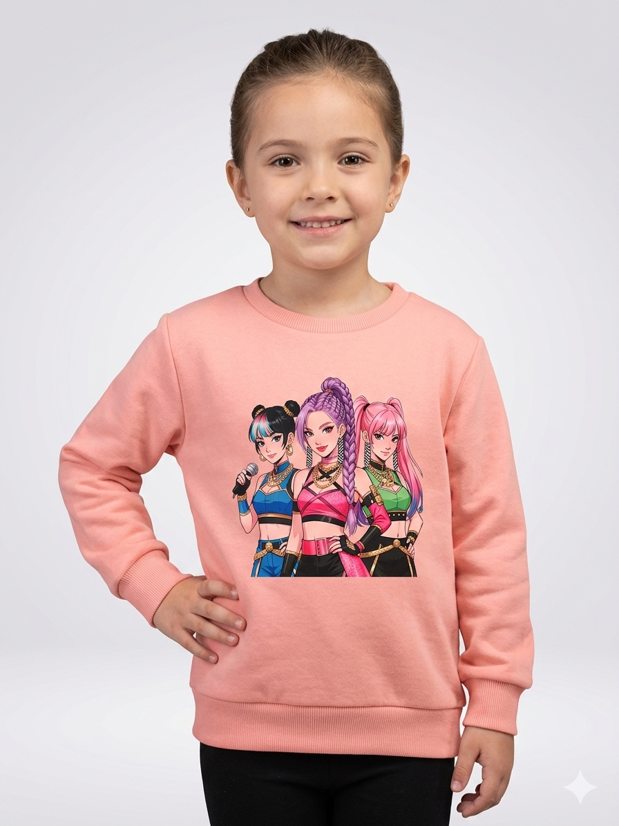 Porta un tocco di energia e colore nel guardaroba della tua bambina con questa esclusiva felpa girocollo ispirata al mondo del K-Pop. Perfetta per le piccole fan che amano la musica, il ballo e uno stile moderno e vivace.