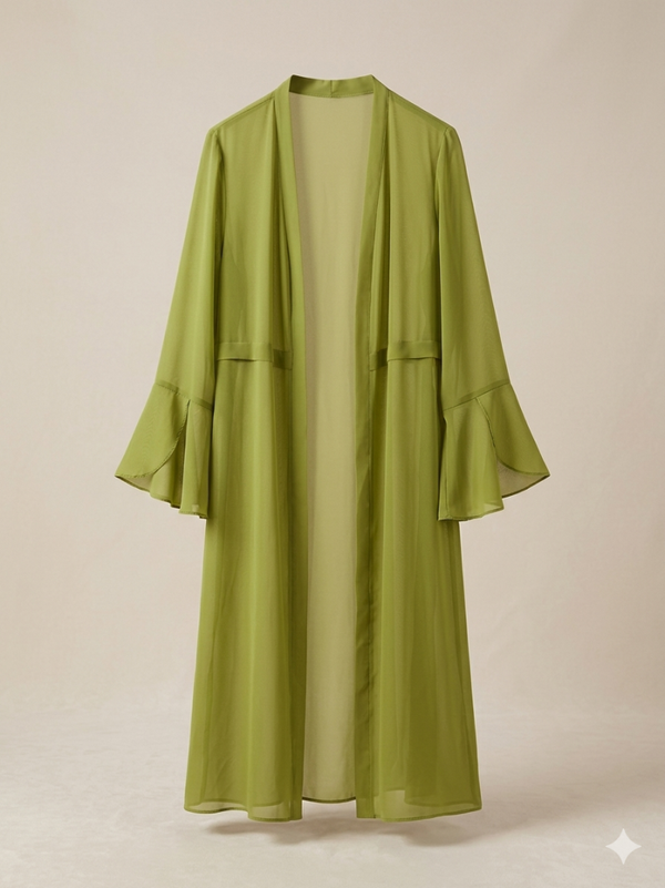 Il Cardigan Lungo: Un capospalla leggero in chiffon semitrasparente che aggiunge verticalità alla figura, perfetto per creare un gioco di sovrapposizioni chic.